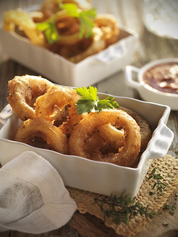 Aros de cebolla con salsa barbacoa