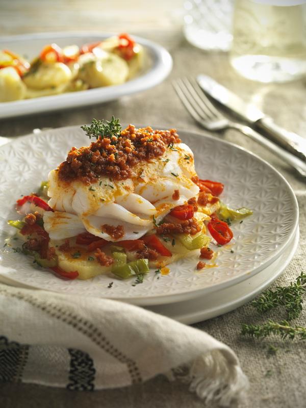 Bacalao con sobrasada y miel