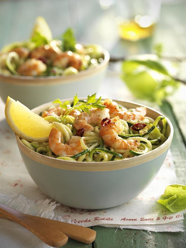 Espaguetis de calabacín con gambas al ajillo